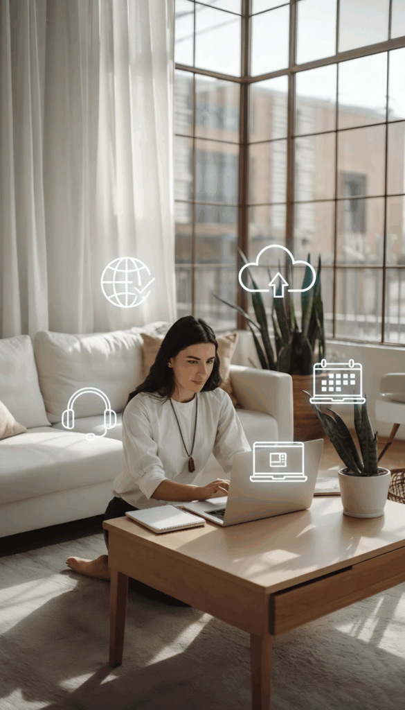 Arbeite jederzeit und überall – alles, was du brauchst, ist eine Internetverbindung und ein Smart-Gerät.